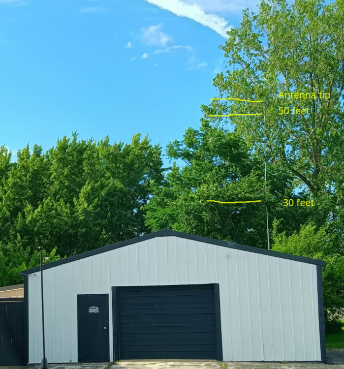 That's way more expensive and involved than mine. Lol. The long and short of it.... I put mine together on the ground and lifted it all as 1 solid piece. I cut the top off the 30' flag pole (3" at the bottom that tapers to 2" at the top). I then slid the first 10' section of 1" electrical conduit about 8" in and drilled through both and used 1 1/2" metal screws to secure them together. Then i used a clamp like they show in your video to attach the last 10' pole. I also drilled through that clamp and added a few screws to help secure it even more. I then wrapped all those connections good with Gorilla tape. Then i mounted the j-pole, ran my LMR-400 and zip tied it all in place. The hard part. Being a holiday weekend nobody was around to help. So i grabbed my extension ladder, propped it up against the garage, and pulled the whole 50' mast up little by little until i had about 20 feet resting on the roof edge. Grabbed another ladder and climbed up on the garage and lifted and pulled until it was 90% erect. Got off the garage and lifted the rest of it up and in to the base of the mounts. From there it was just tighten up the mounts, fill my hole for the base and done. Probably not the best way to do it, but it worked for me, and is budget friendly.