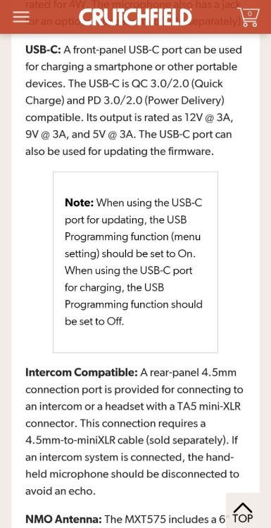I have seen 1 articles about the MXT575 that said the USB-c port is used for charging and programming. Anyone have any experience?