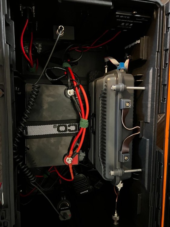 4. I wanted to share my results of my 2nd Ed Fong GMRS antenna. This is on a 18' MFJ tripod mast on a Retevis RT97 GMRS repeater go box, powered by a 50AH lithium battery charged by tactical solar or wall charger through SAE ports on the box. Also using a repeaterid.com ID system with morse code. Couldn't be more happy with the results, the machine ran all weekend and solar kept it fully charged, and hardly any battery loss over the night. Using the 462.550 / 467.550 repeater pair with TX and RX codes. SWR under 1.1 and getting 5.2W output after the duplexer. The Fong GMRS antenna is the star, so lightweight and portable, with no need for grounding. Using 18' of Messi & Paoloni Ultraflex 7 with the good waterproof connectors (also have a 25' run of it if needed, love this cable and connectors for tactical or shorter runs). If anybody has any questions regarding this set-up, I will be more than happy to help.