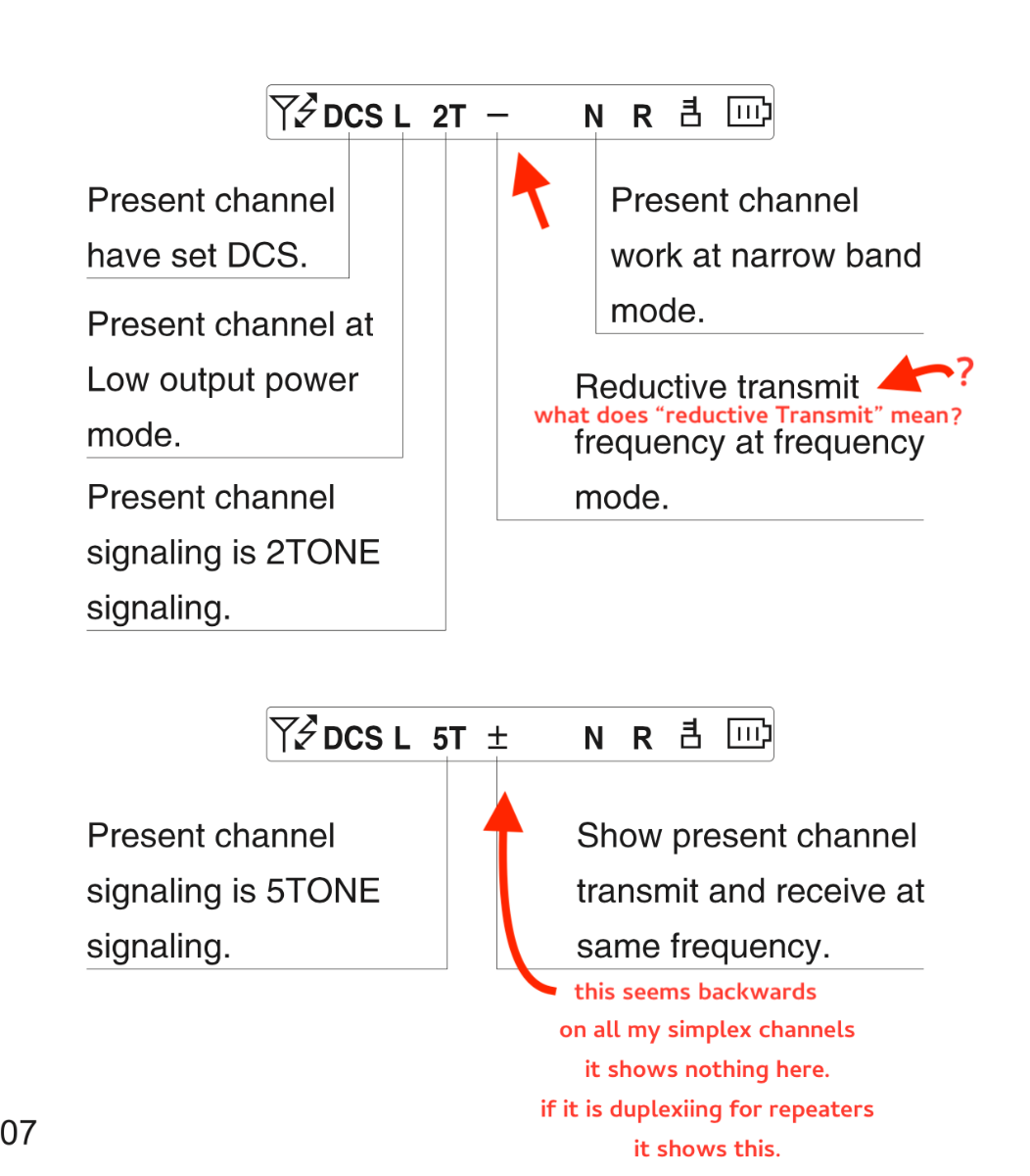 This seems wrong in the manual... would not be surprised.. the manual is littered with badly composed English. In CHIRP it shows + 5 for TX... and this is what it shows on the screen to indicate it is +5 duplex.- 40 replies