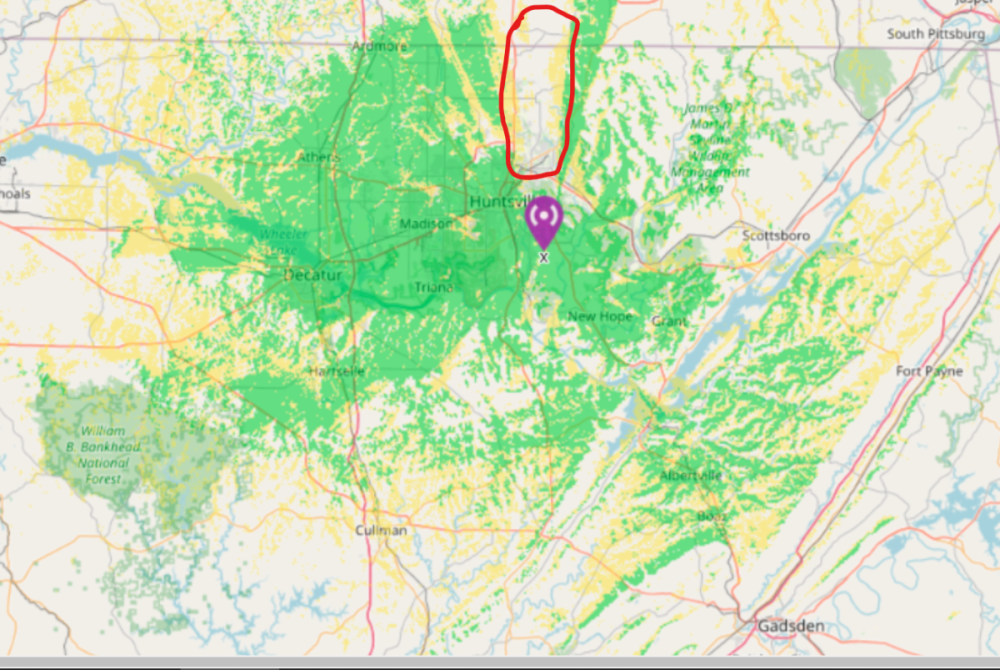 Sorry, been busy and havent had time to get back on this forum, Im on the edge of Meridianville and Huntsville Al. Unfortunately although I love my new house, I picked a location that was in an area that has a large deadzone from the nearest repeater. I did drive over close to this repeater the other day and got a response back, when I keyed up but yeah, I think there are mountains blocking it to my house. -