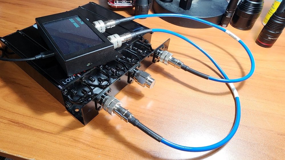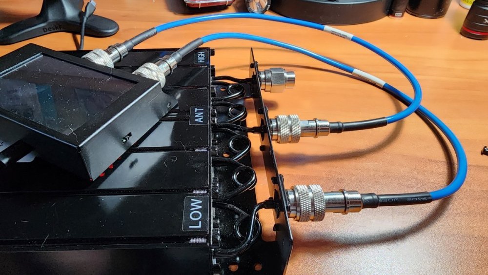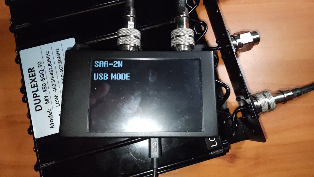 To answer question about tools used and how to adjust a duplexer, here is a quick overview. Tools I used: Windows PC SAA-2N VNA VNA View software Box Wrench Screw Driver Brass Brush To tune the duplexer, you have to follow a couple of steps. Calibrate the VNA for the frequency you are testing (via the PC or on the VNA, depending on if you are using the PC or not) I typically set the center frequency to the frequency I am tuning for, with a 10MHz spread. From there, we are going to tune either the low side or high side, separately. For this example, we can start on the low side. Connect the S11 cable to the "antenna" port. Connect the S21 cable to the "LOW" port. Put a dummy load on the "High" port. Refer to Image 1. Set the Trace 1 format to S21 Thru. With a mobile UHF cavity duplexer, you can disable the other traces, but if you want to track your SWR at the same time, set Trace 2 format to S11 SWR, and then disable the remaining traces. Adjust your scaling so you can see at least -110dB Adjust each adjustment screw to create the deepest notch possible, to the transmit frequency. In this example, 467.600MHz. only adjust one tuning screw at a time, loosen the jam nut with the box wrench, just enough to allow the tuning screw to move, and while making adjustments, hold the jam nut with the wrench. Typically, once you set the screw to the proper depth, it can be a bit tricky to set the jam nut without turning the screw a bit at the same time. A trick I learned is that I put the screw just a few degrees off, counter clockwise, so as I tighten the jam nut, it snugs the tuning screw into the correct location. See Image 2 and Image 3 From there, switch the S11 cable to High, and the dummy load to the Low side. Repeat the tuning steps for the high side, but tuning the notch to the receive frequency. In this example, 462.600MHz. This guy has a great video on using a VNA to adjust a duplexer. I have no idea who he is, but it it's good content. The only thing I would add is, he stated he is using 200 sweep points. I would use the highest sweep setting you can that provides a good enough resolution of the frequency spread you are tuning. On the VNA itself, I use 401 points, but on the PC, I use 1024 points. https://www.youtube.com/watch?v=TbEK4v_3Xuo With this duplexer, specifically, the tuning screws are brass. Either the manufacturer or B-Tech spray painted the tuning slugs. I had to spend a bit of time cleaning the paint off the screw threads and heads with a brass cleaning brush to make it so the duplexer could be tuned. If you have a situation like this and want to repaint the screws for cosmetic reasons, be sure to use non-metallic paint, such as Krylon Fusion for Plastic. It must be non-metallic, polyurethane free, and lead free. I am including a few extra pictures displaying the results. Image 1 Image 2 Image 3