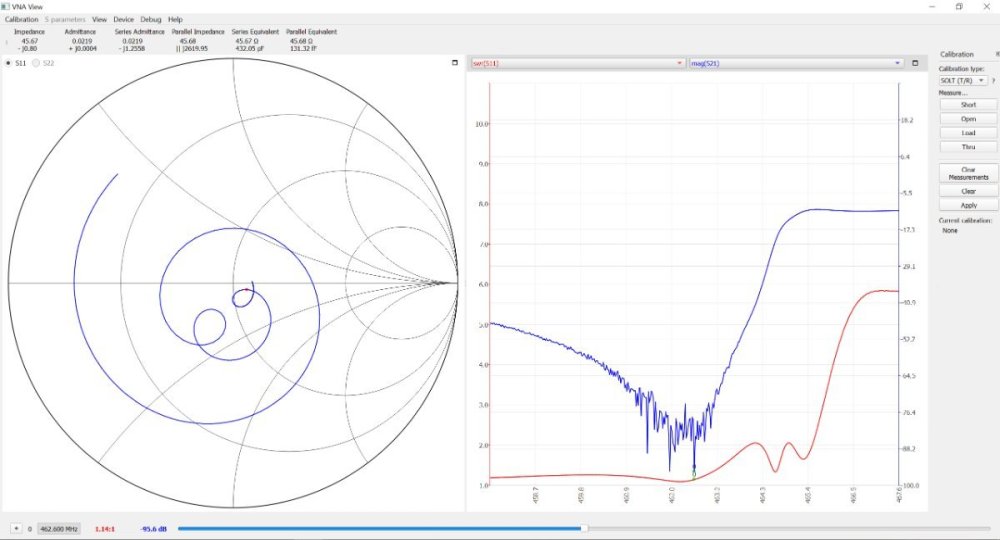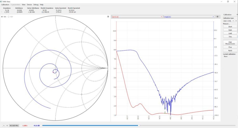 It's a Smith Chart SWR Circle. It's a circle that is drawn centered at the origin frequency, passing through the plotted impedance point. This circle represents a constant SWR through the range. The value where the SWR circle intersects the positive real axis (right side) of the chart indicates the SWR. The closer the red dot is to one of the lines radiating from the right side, the closer to 1:1 the SWR is on that frequency. I tried the TinyVNA and it did not work. It was way off... very inaccurate. A friend of mine (who is a retired RF engineer) uses a SAA-2N VNA when he is in the field. He has great results with it, which is why I went with that specific VNA. It's "good enough" that I would not encourage people who are doing this as a mild hobby to buy a commercial Signal Analyzer. If professionals are using it, the SAA-2N VNA is good enough for me. I have not compared mine to a commercial grade SA, but I have tuned 5 duplexers (UHF and Commercial VHF) with the SAA-2N VNA since I bought it and have had amazing results. With a 2m repeater only having a 600KHz offset, accuracy is extremely critical. My 2m repeater is covering over 8 miles with 5w handheld radios and well over 25 miles with 50w mobiles, and the antenna is only 100' above the ground, 200 feet above average terrain. Those numbers are both further than the theoretical/calculated RF LOS. So, I personally have confidence in the SAA-2N VNA.