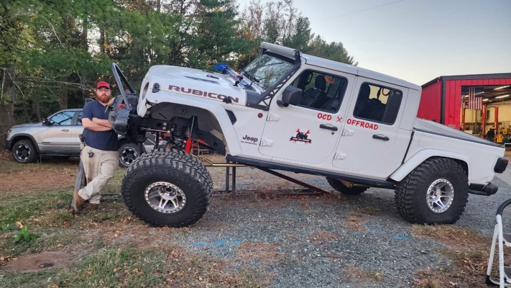 Man, don't you know it. Just had $40k in work done to my Gladiator... it hurt a little, but hot damn. 40" Mickey Thompson Baja Boss MTs and a Metalcloak 4.5" long-arm lift with all the bells and whistles... worth every penny. My son posing with it... (he did the build)