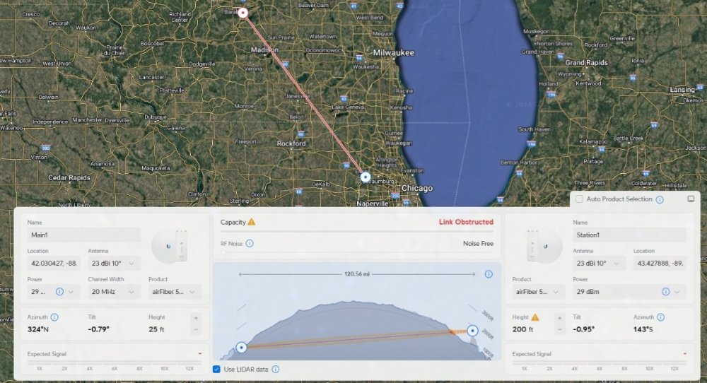 LMAO! No dude, I mean not as far as line of site is concerned.... That website sucks and you shouldn't use it.... It doesn't take into consideration the curvature of the earth... Try https://ispdesign.ui.com/ instead I seriously wonder why anyone uses that website... Unless someone thinks the world is flat????