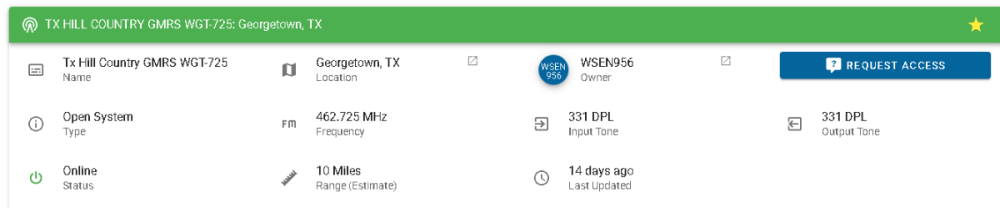 Repeater I want to use: https://mygmrs.com/repeater/11089 Info: Tx Hill Country GMRS WGT-725