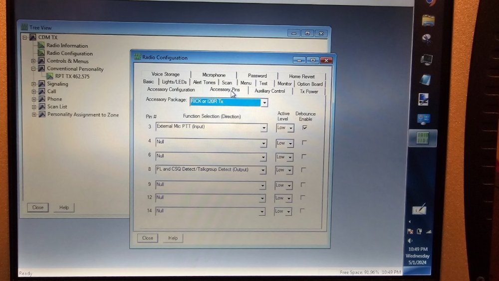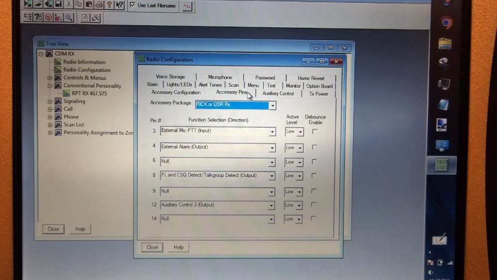 Hello Internet. I'm trying to use 2 Motorola CDM1250 radios for a repeater configuration with a motorola RICK, and I'm having a difficult time trying to get the cables from the CDMs to power and control the Rick. I know the rick and cables work because they came out of my working GR300, but they won't now. I'm confident it's some settings in the CPS but I've played around with it extensively and I've became exasperated. There's some magic setting I'm missing. Does anyone have an idea? **Pin 4 and Pin 12 on the RX radio is set because I want to use the RICKs knockdown feature where if I transmit a DTMF tone, it'll kill the TX repeater with ignition sense.